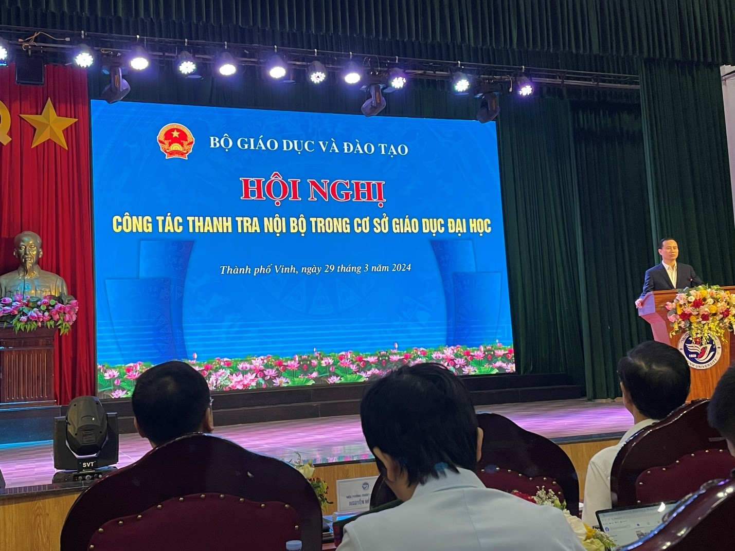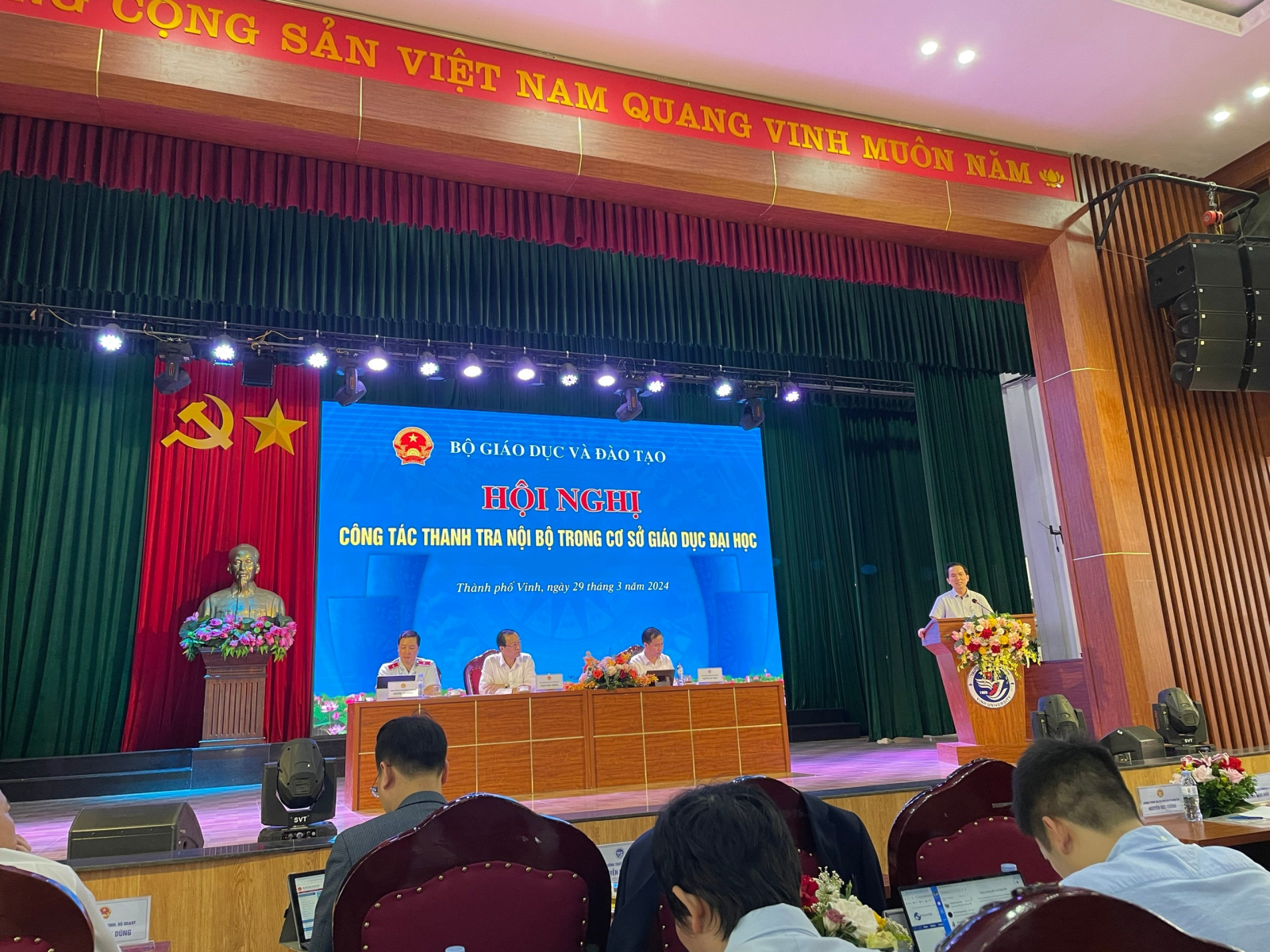 Sáng ngày 29 tháng 3 năm 2024, tại Trường Đại học Vinh, Bộ Giáo dục & Đào tạo đã tổ chức Hội nghị công tác thanh tra nội bộ trong cơ sở giáo dục đại học.
